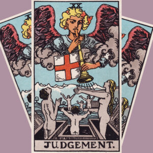 ウェイト版タロットにおける「世界」には、中央に裸の女性がリース(花輪)の中に立ち、軽やかに踊るような姿が描かれています。手には2本のワンドを持ち、四隅には聖書の四福音書を象徴する動物(天使、鷲、牡牛、獅子)が配されています。これらは「調和」「統合」「宇宙の秩序」を表し、地・水・火・風の四大元素とも関連づけられます。